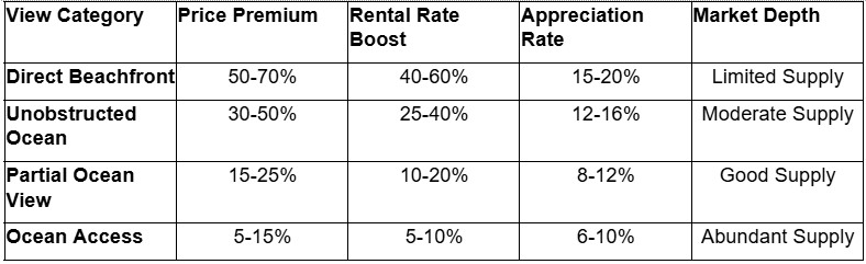 The relationship between view quality and rental income is particularly strong, with unobstructed ocean views generating 30-50% higher nightly rates than partial view properties.